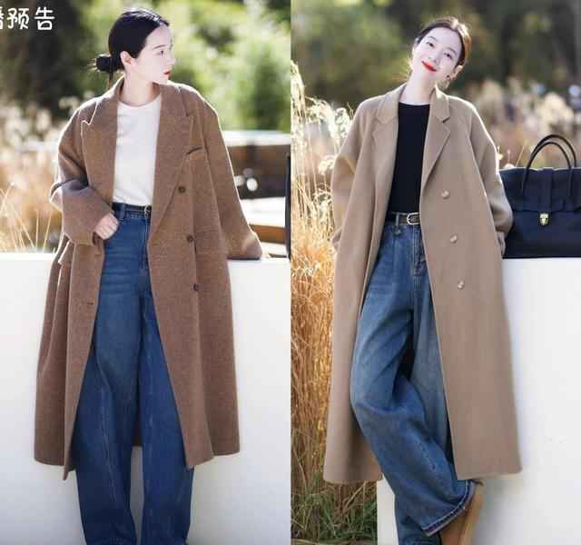 比如用深驼色大衣配浅卡其毛衣,下身搭深棕色阔腿裤,层次感细腻又高级;或者在中性色基础上,用黑白灰来点缀,提亮整体造型。