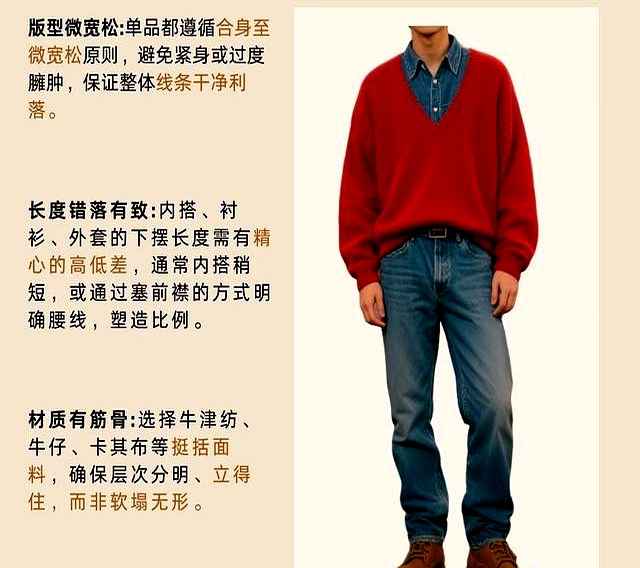 你可以把衬衫换成工装款,皮鞋换成马丁靴,甚至混搭日系元素——只要把握“旧色调+宽松版型+细节点缀”的原则,怎么搭都好看。