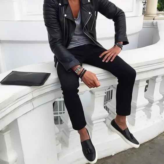 @ 热爱复古的Vincent: 我是男生,也有同样的烦恼!除了万能的黑色牛仔裤,男士皮衣还有什么有特色的裤子搭配吗?