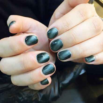 简单粗暴地说,猫眼美甲就是一种用了特制甲油胶,靠一块小磁铁“施法” 做出来的光疗美甲。它最勾人的地方,就是指甲上会有一道(或者几道)像猫科动物眼睛在暗处那样,细长又神秘、会随着光线和视角移动的光带,灵动得不得了-1。