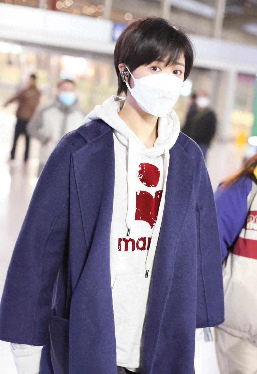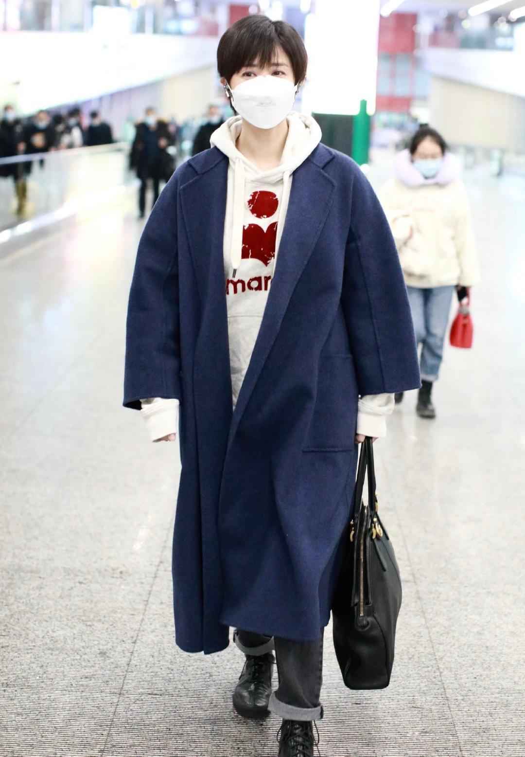 蒋欣头发又剪短了,穿白色带帽卫衣配宽松大衣,时尚减龄又显气质