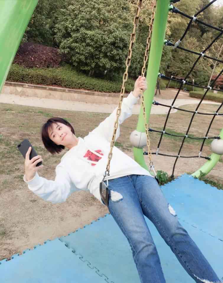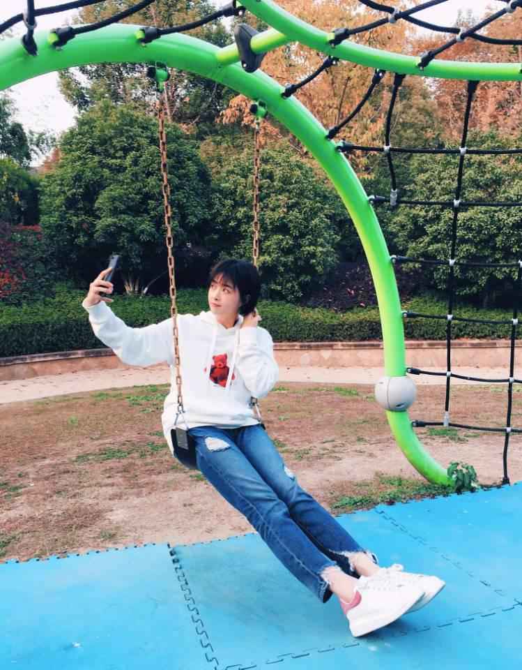 卫衣的好搭档当然是牛仔裤,不管什么版型或颜色,选对了就能穿出范儿。蒋欣配了条深色小脚牛仔裤,深色调和短发造型呼应,酷帅感立马飙升。