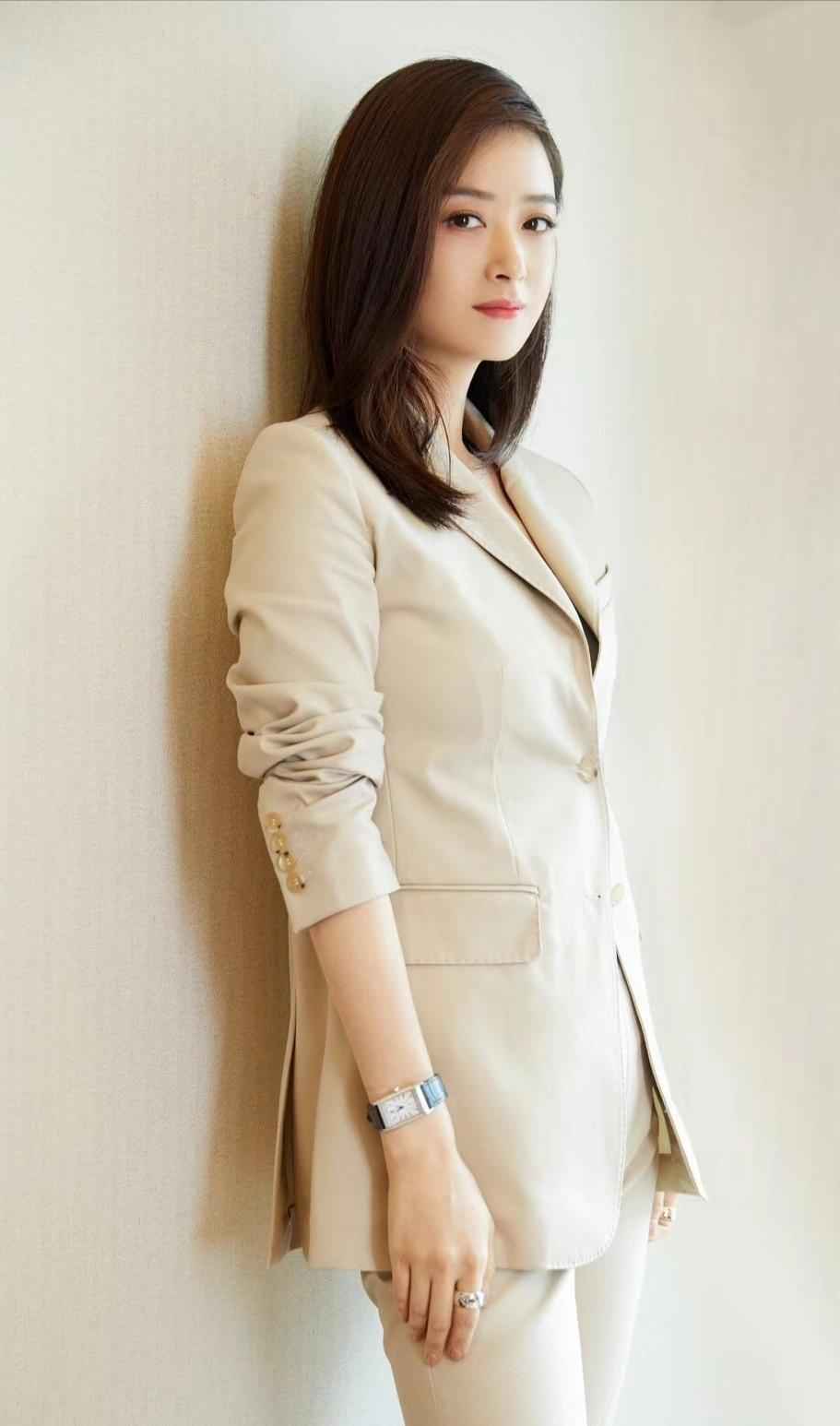 蒋欣个子高,骨架大,圆脸容易显胖,穿西装时经常选常规款式,虽然不追求前卫,但气质和时尚感一点不输。微胖女生穿西装,关键是选对版型。