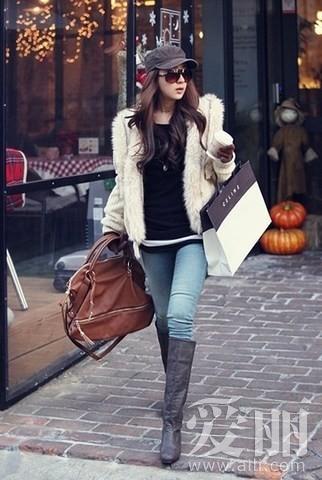 小个子姐妹:首选带跟的尖头靴,视觉延伸效果最强。牢记“高腰线”法则,并多尝试“下装失踪”的搭配,让长靴尽可能多地包裹腿部,统一色系,腿长自然就被“拼接”出来了-6。