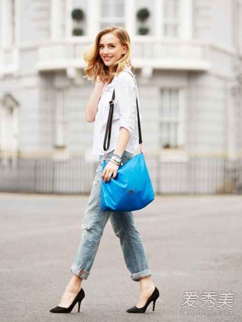 @天天想放假: 我只有一条最普通的蓝色紧身小脚牛仔裤,鞋柜里除了运动鞋就是帆布鞋,怎么穿能有点新意?