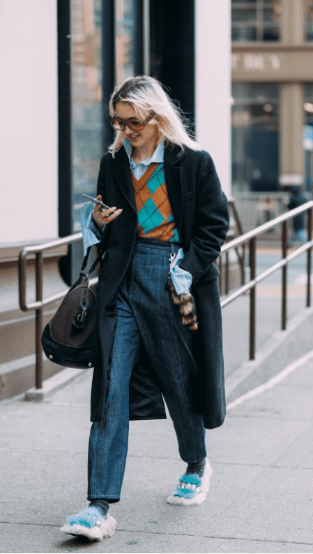最简单有效的组合是 “衬衫+针织背心/马甲” 。这套搭配单穿时是复古学院风的代表,充满了书卷气-9。当你把它作为内搭,套上大衣或羽绒服时,在室外足够保暖。一旦进入室内,脱下外套,露出衬衫与马甲的层次组合,反而比一件普通的毛衣更显用心和时尚功力-2。一件菱格纹针织背心搭配浅蓝色衬衫,下装无论配西裤还是牛仔裤,都是脱掉外套后全场瞩目的焦点。
