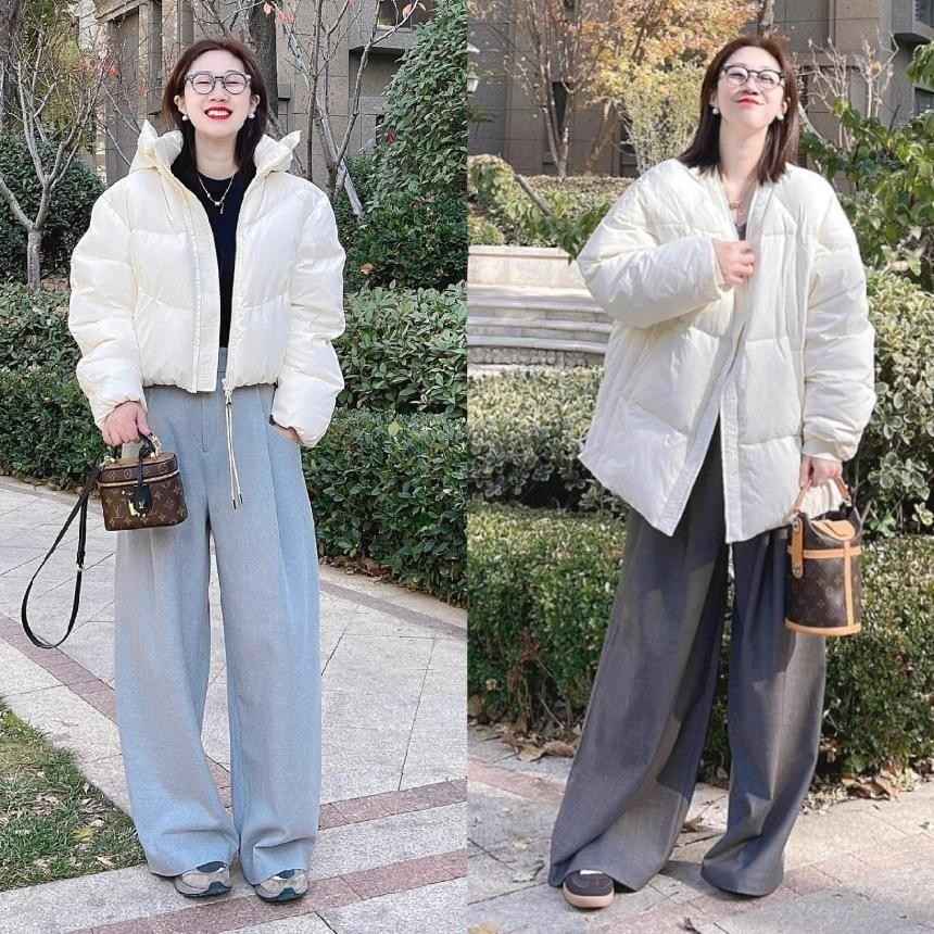 其实这两组搭配能火,核心就是太懂少女了,咱们这个年纪,可能有点小肉肉、腿型不完美,选衣服既想遮缺点,又不想穿得臃肿。“羽绒服+阔腿裤”就刚好解决了这个矛盾,羽绒服选宽松点的H型或茧型,不用贴紧身体,自然就能遮住腰腹和肩背的肉肉,显瘦效果超棒。