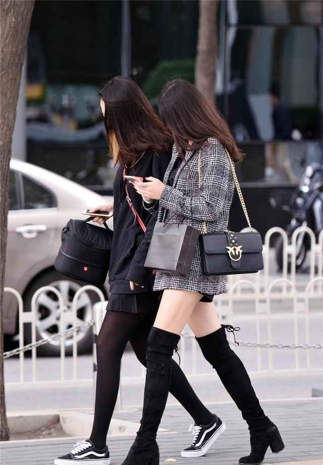 叠穿及膝袜和短靴的组合,在年轻人中特别火,通过层次感展现个性和趣味。