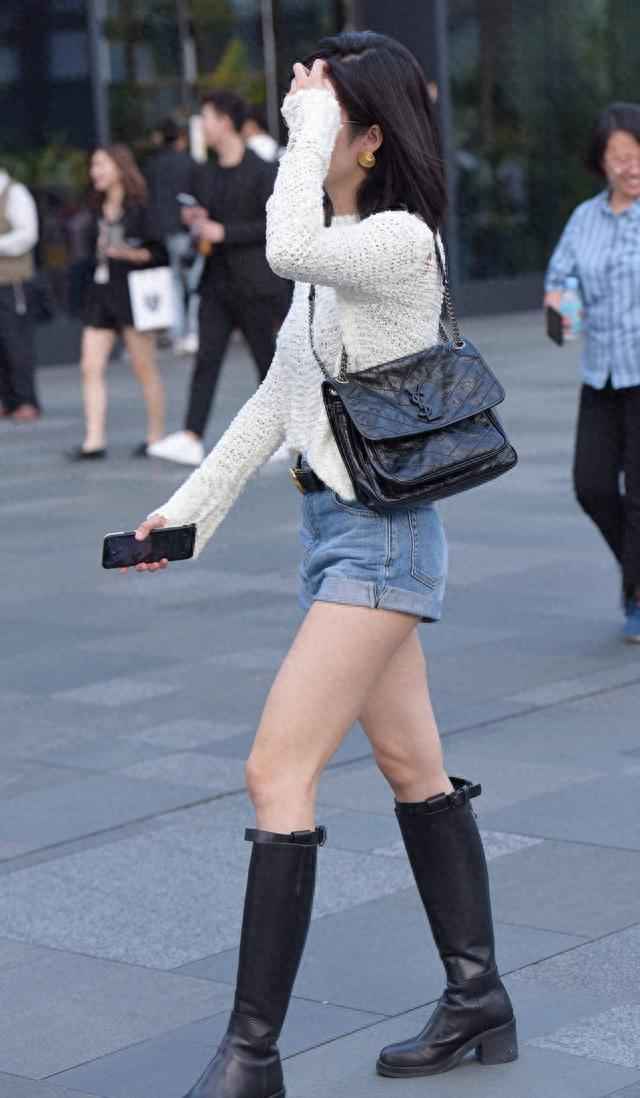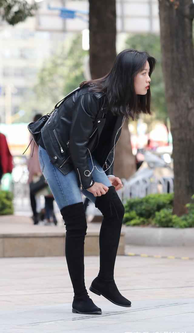 牛仔裤是靴子的经典搭配,直筒或紧身款都可以,把裤脚塞进靴筒或自然覆盖,都能突出靴子的细节,日常穿很实用。