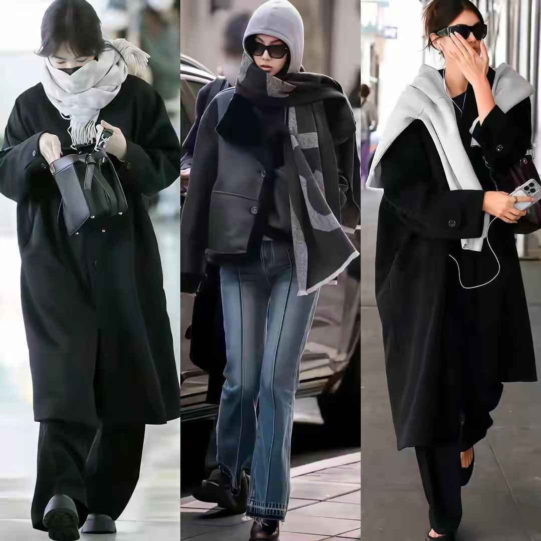 冬天穿一身黑也挺酷,适合性格内敛的女生。关键是衣服面料要有质感,比如选有垂感、不起球的面料。可以像达人一样搭条白色围巾,瞬间提升高级感。