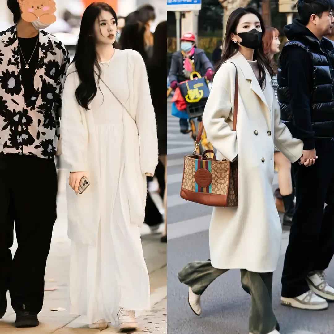 穿衣打扮不光要时髦,还得保暖舒适,更要能凸显好身材。像上面这两套穿搭就用了“松紧结合”的妙招,宽松的浅驼色或白色大衣配上蓝色牛仔裤,内搭修身针织衫,整体看起来苗条又有型,走在街上绝对抢眼。