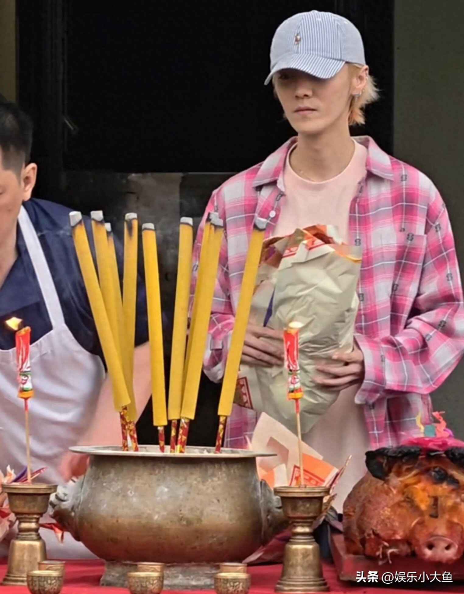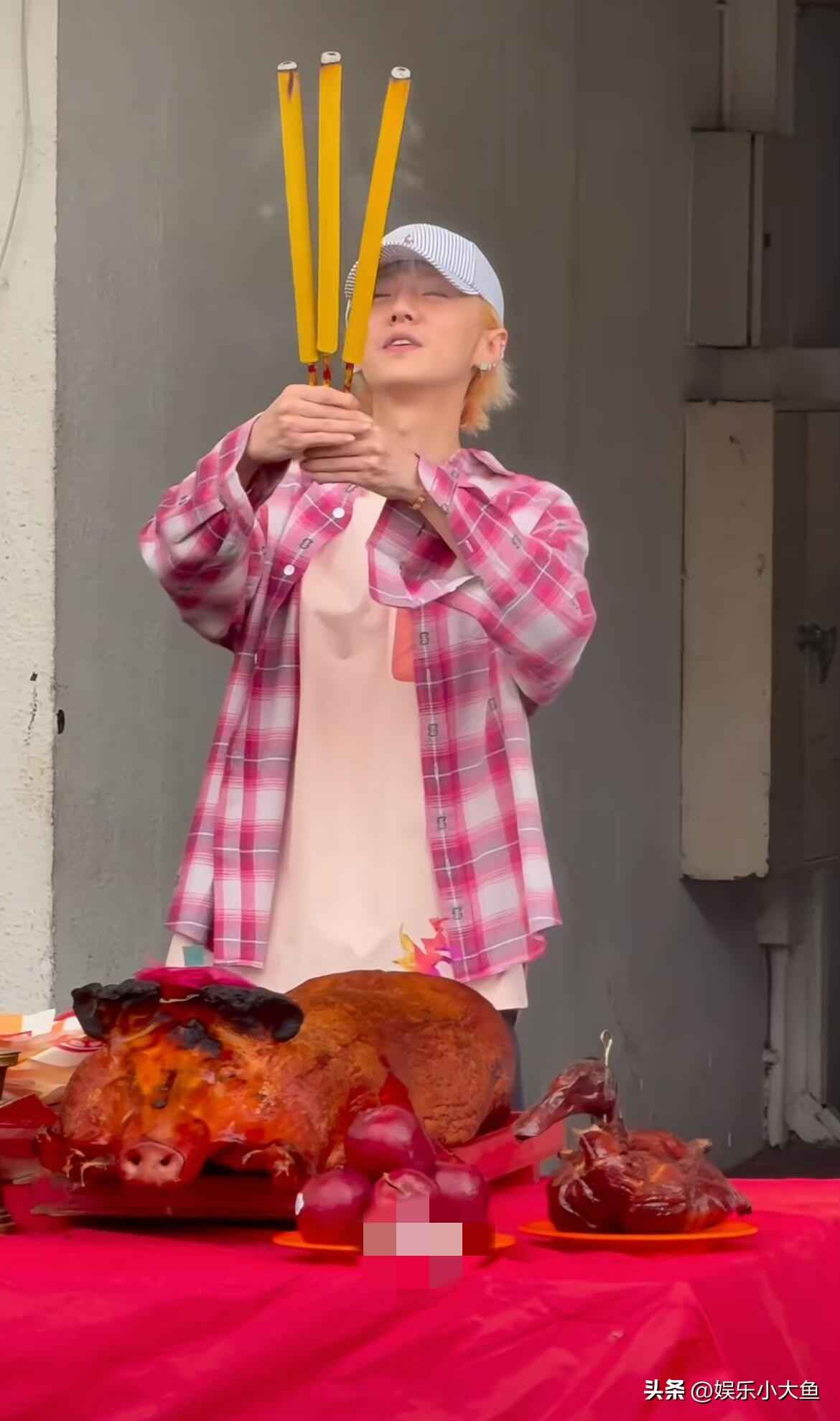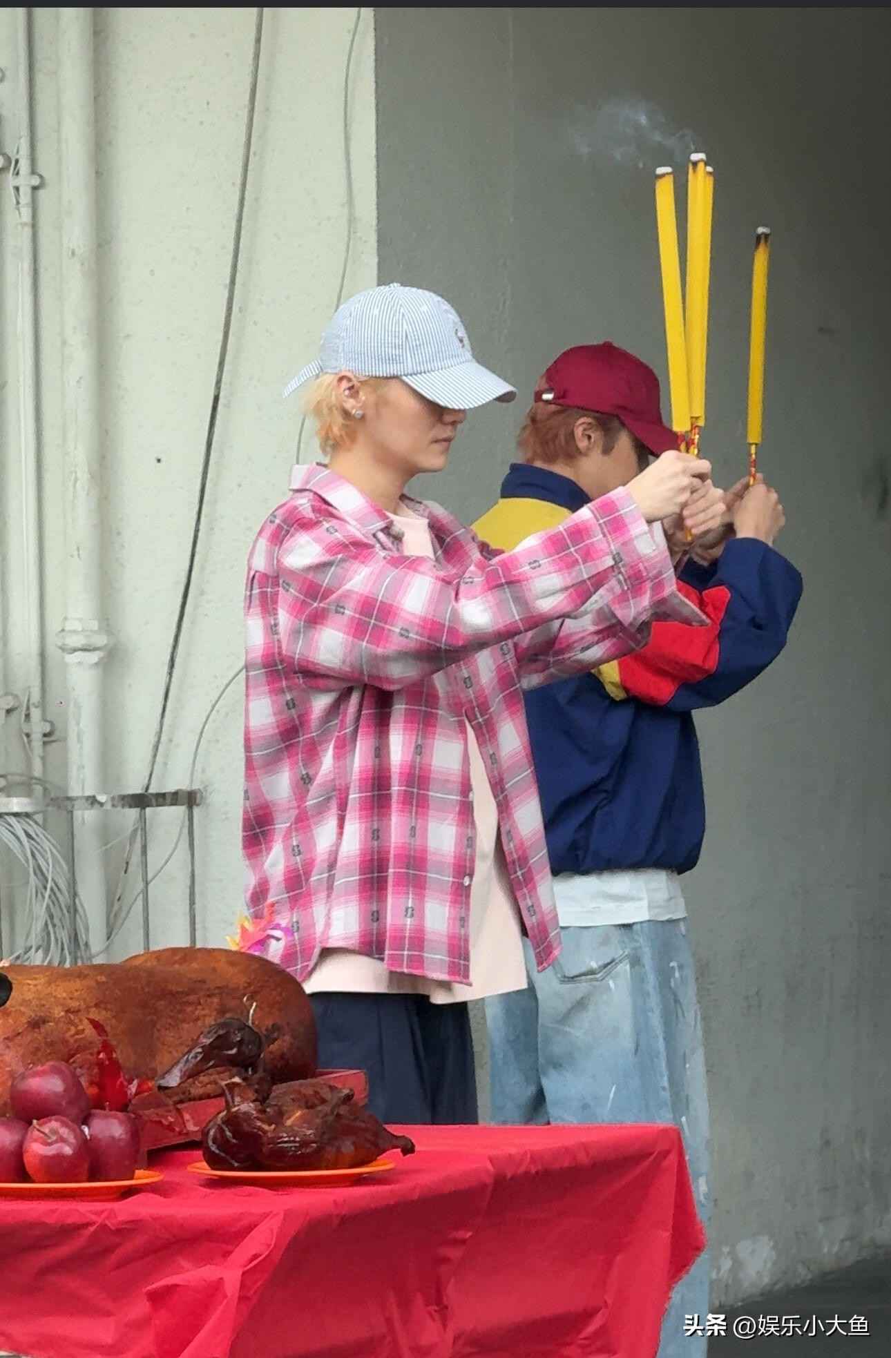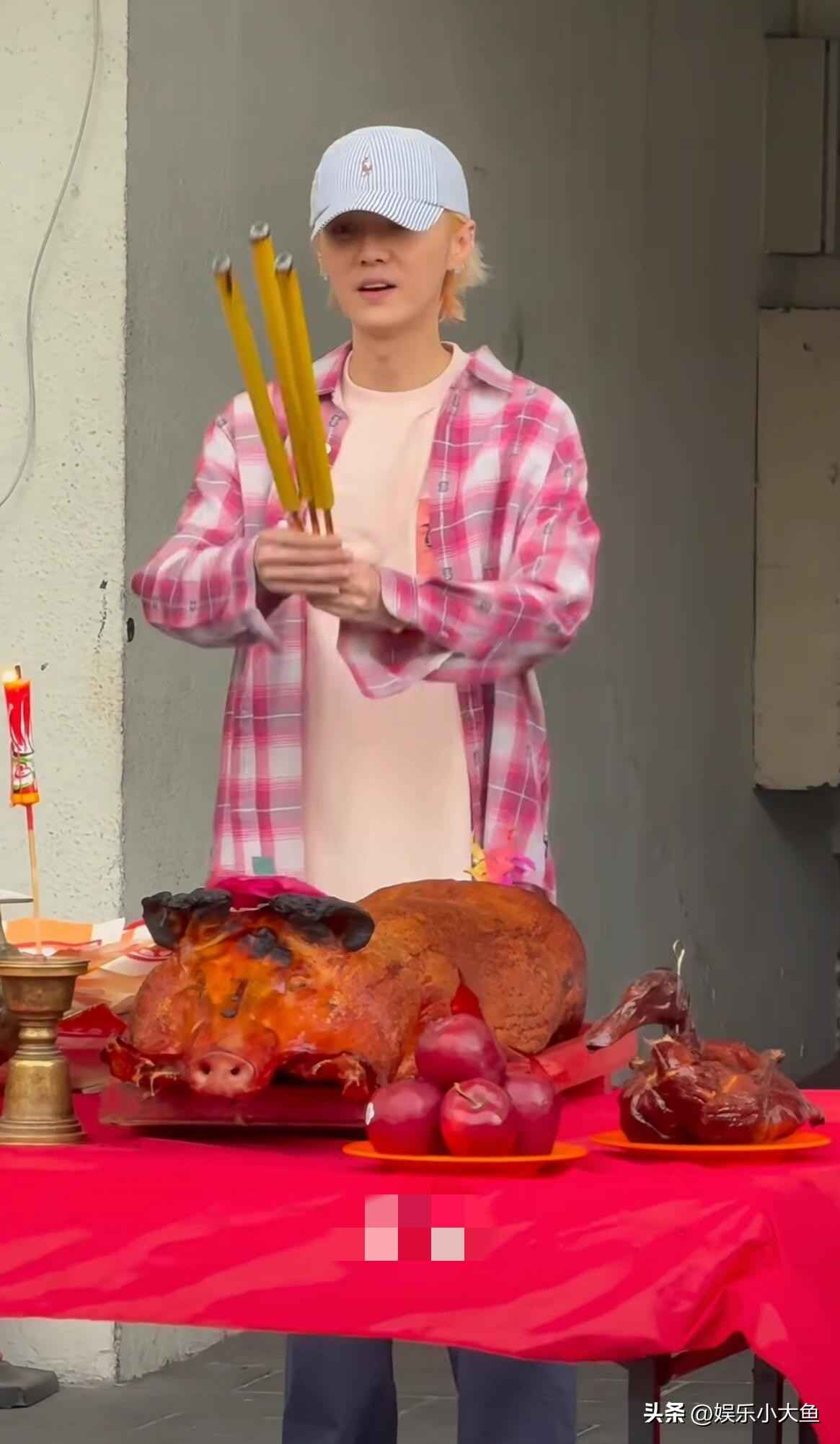 鹿晗现身香港红馆拜神仪式,粉色短袖搭配玫红格子衬衫尽显青春活力