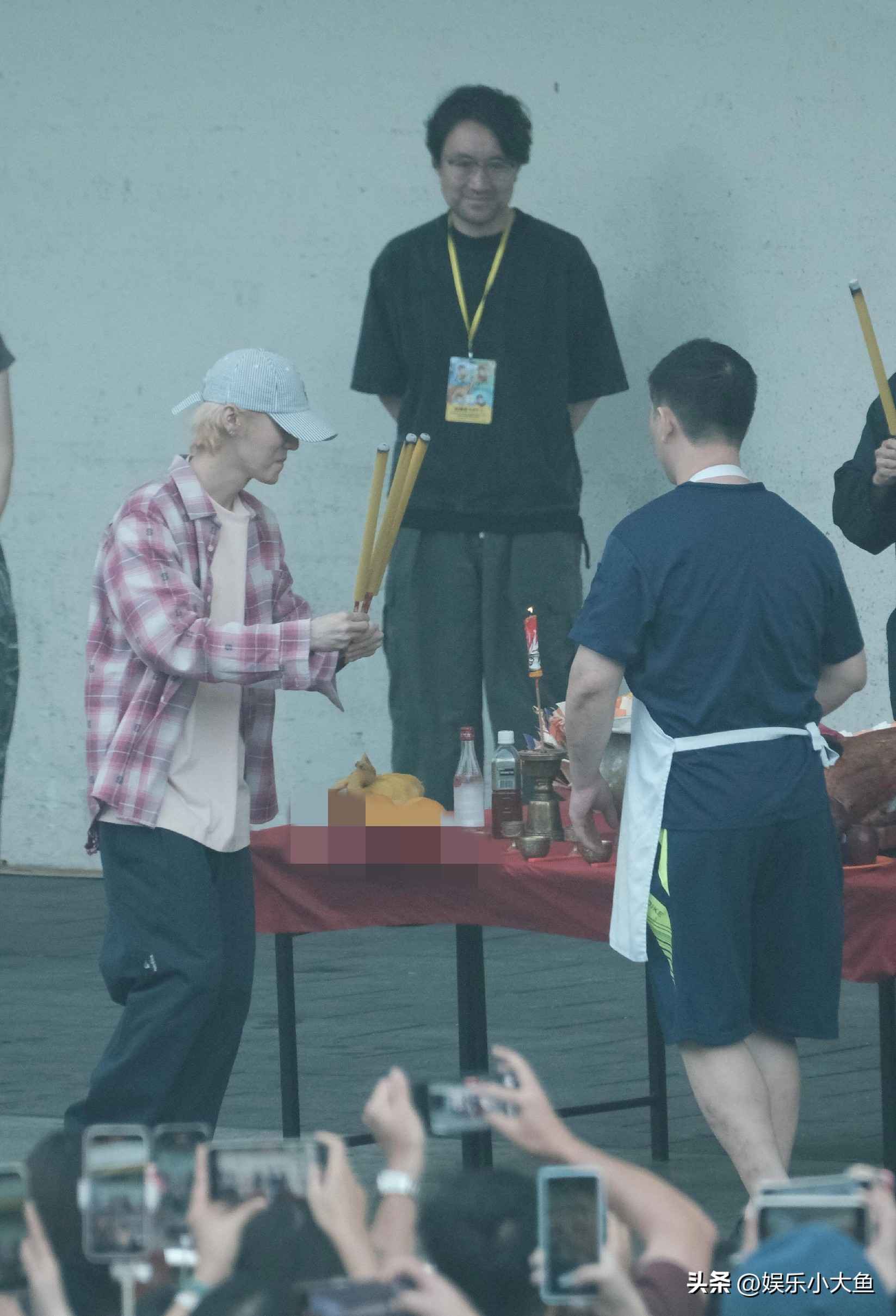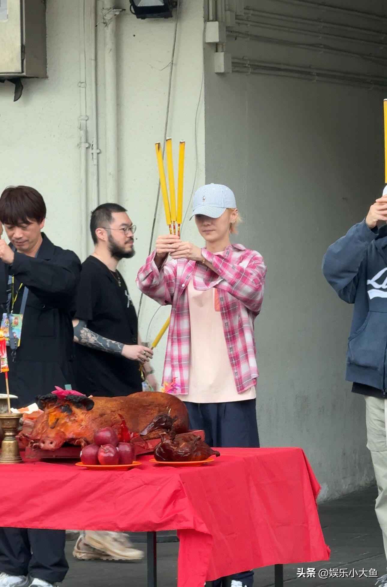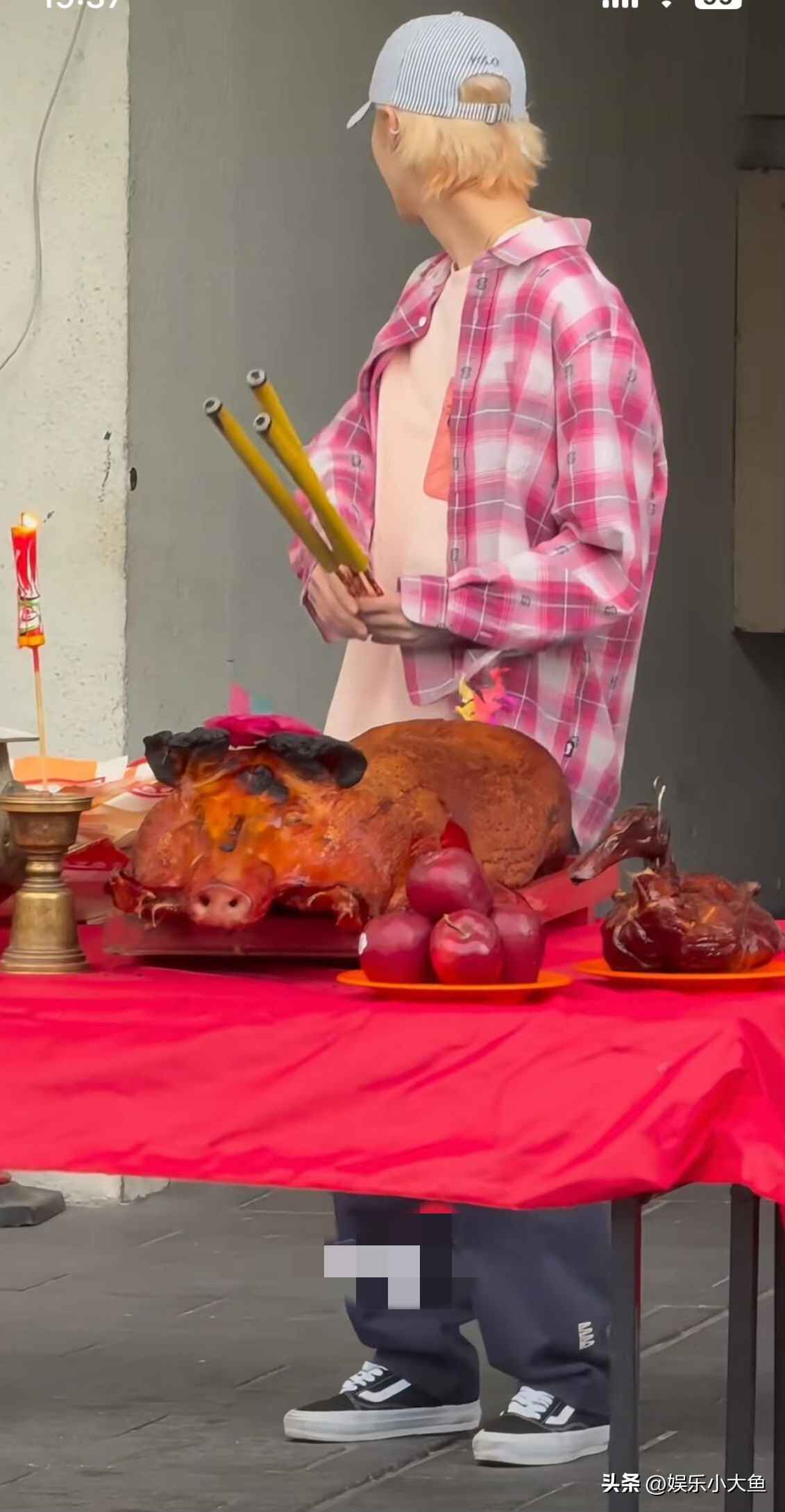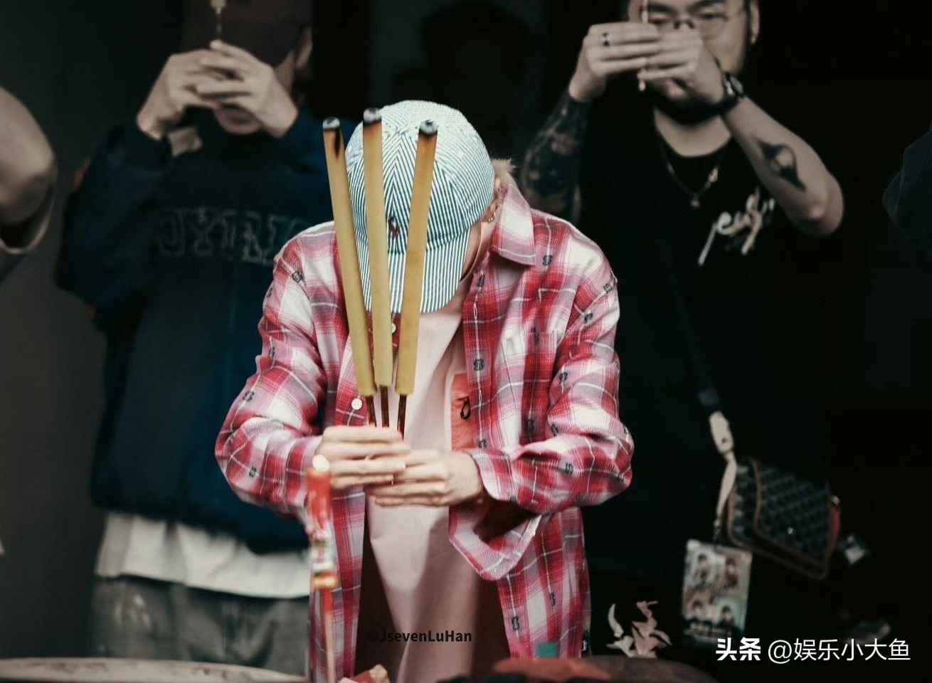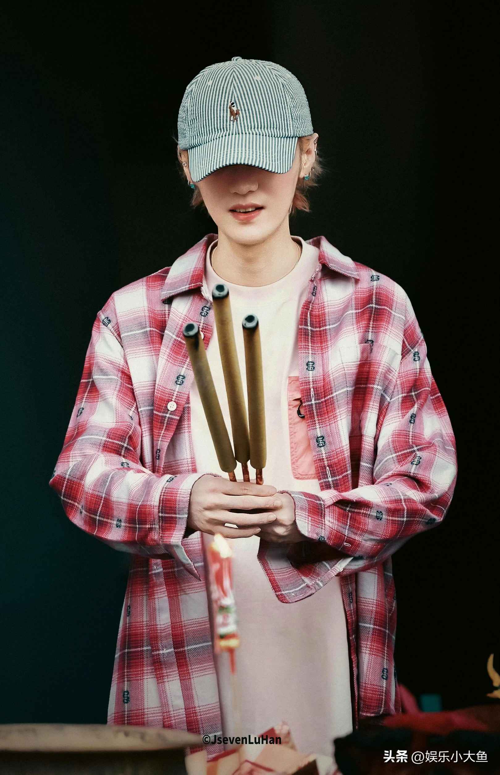 鹿晗现身香港红馆拜神仪式,粉色短袖搭配玫红格子衬衫尽显青春活力
