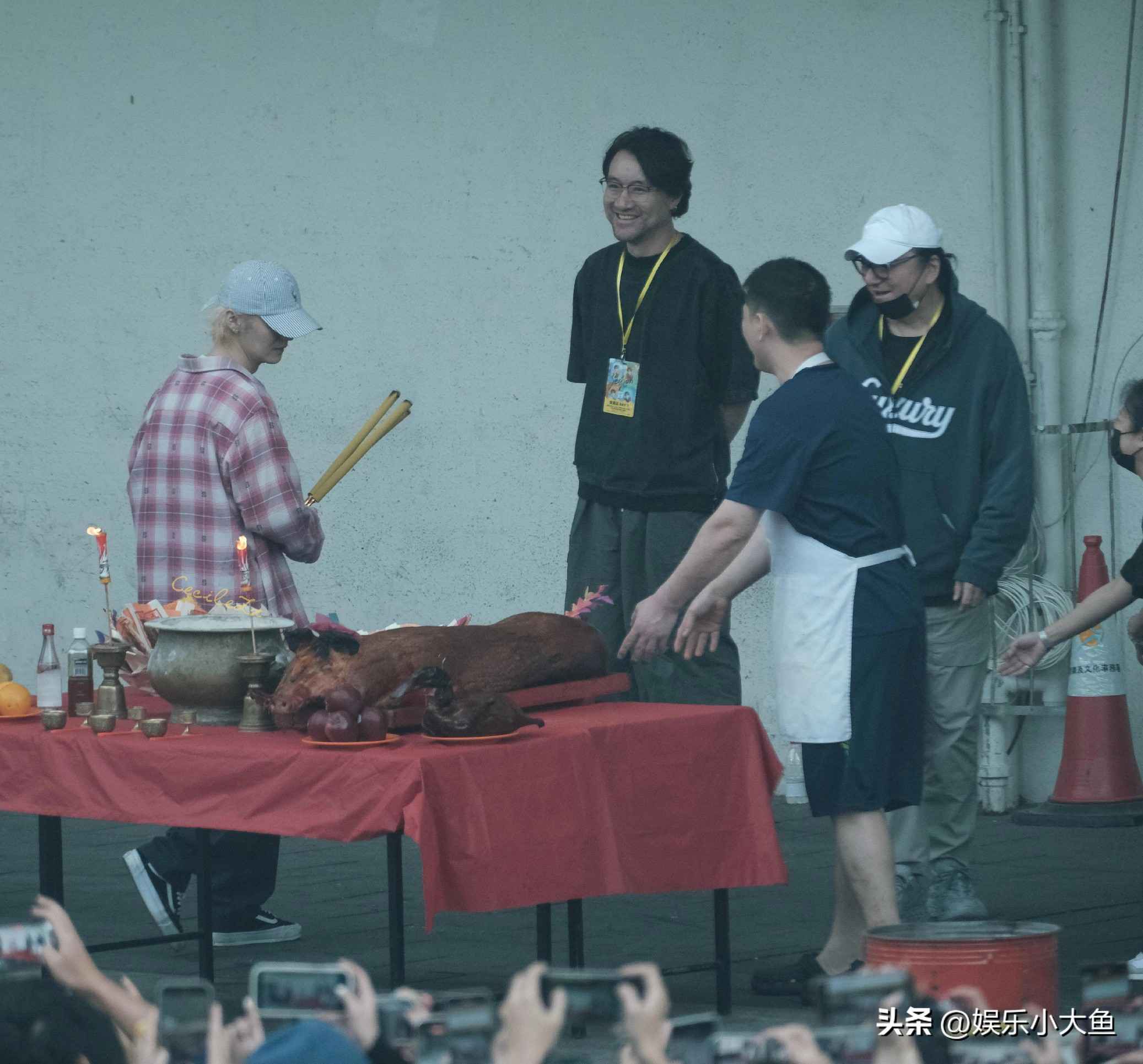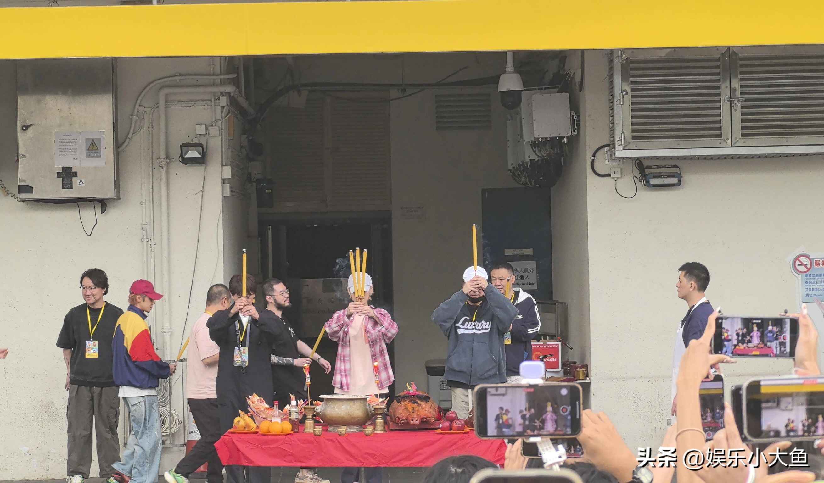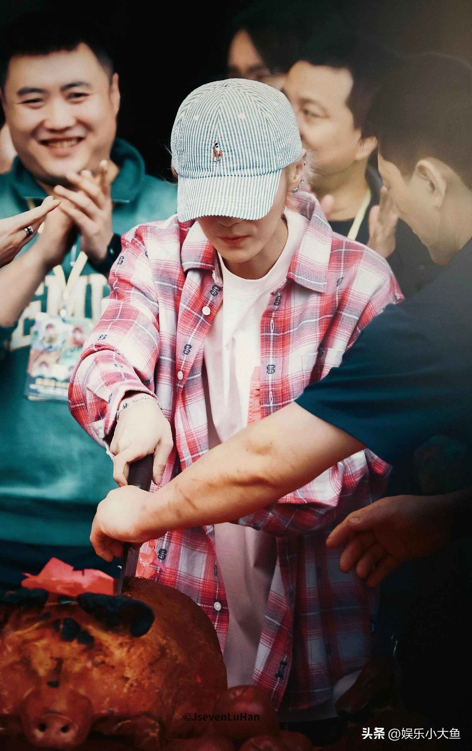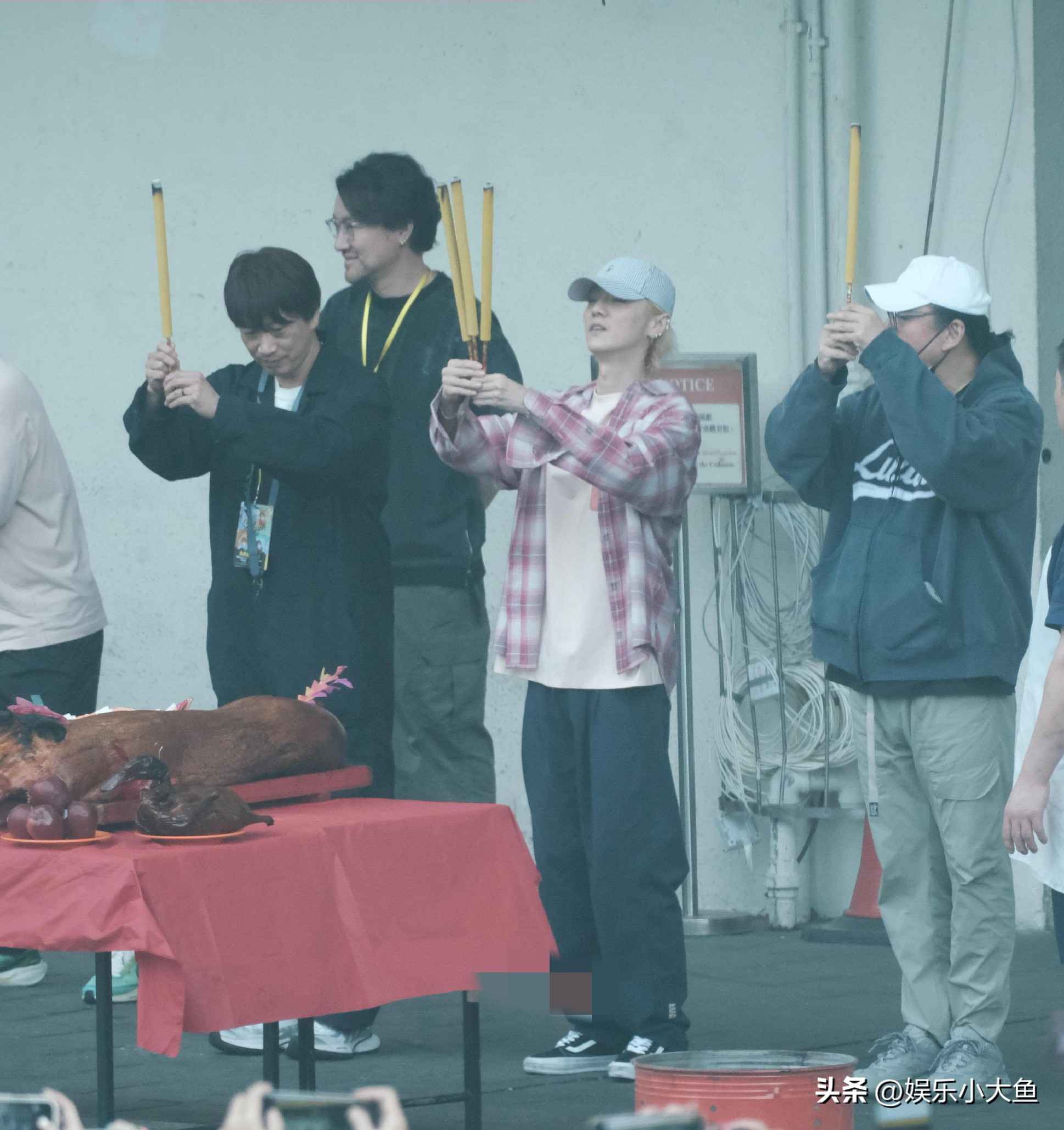 鹿晗现身香港红馆拜神仪式,粉色短袖搭配玫红格子衬衫尽显青春活力