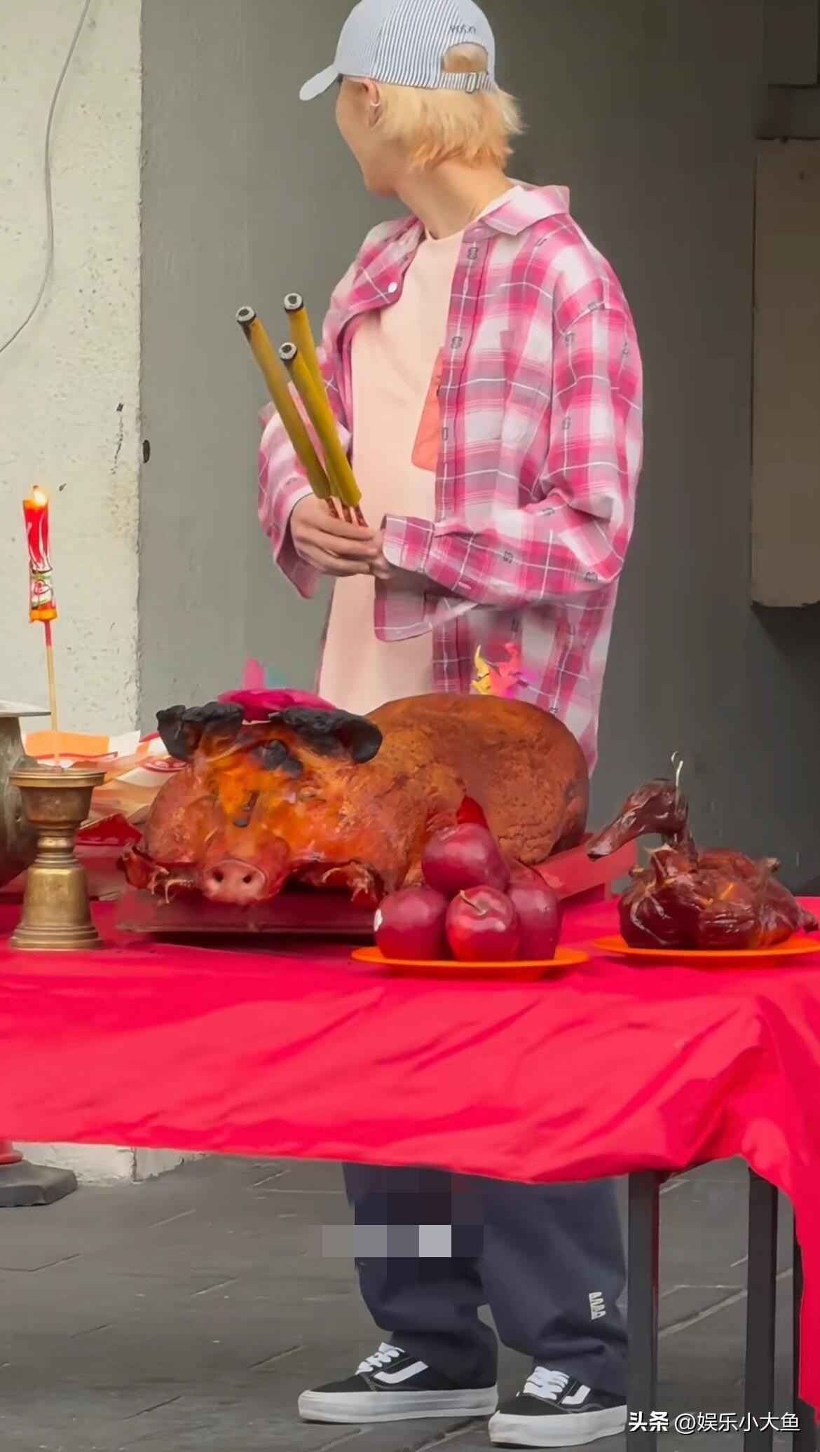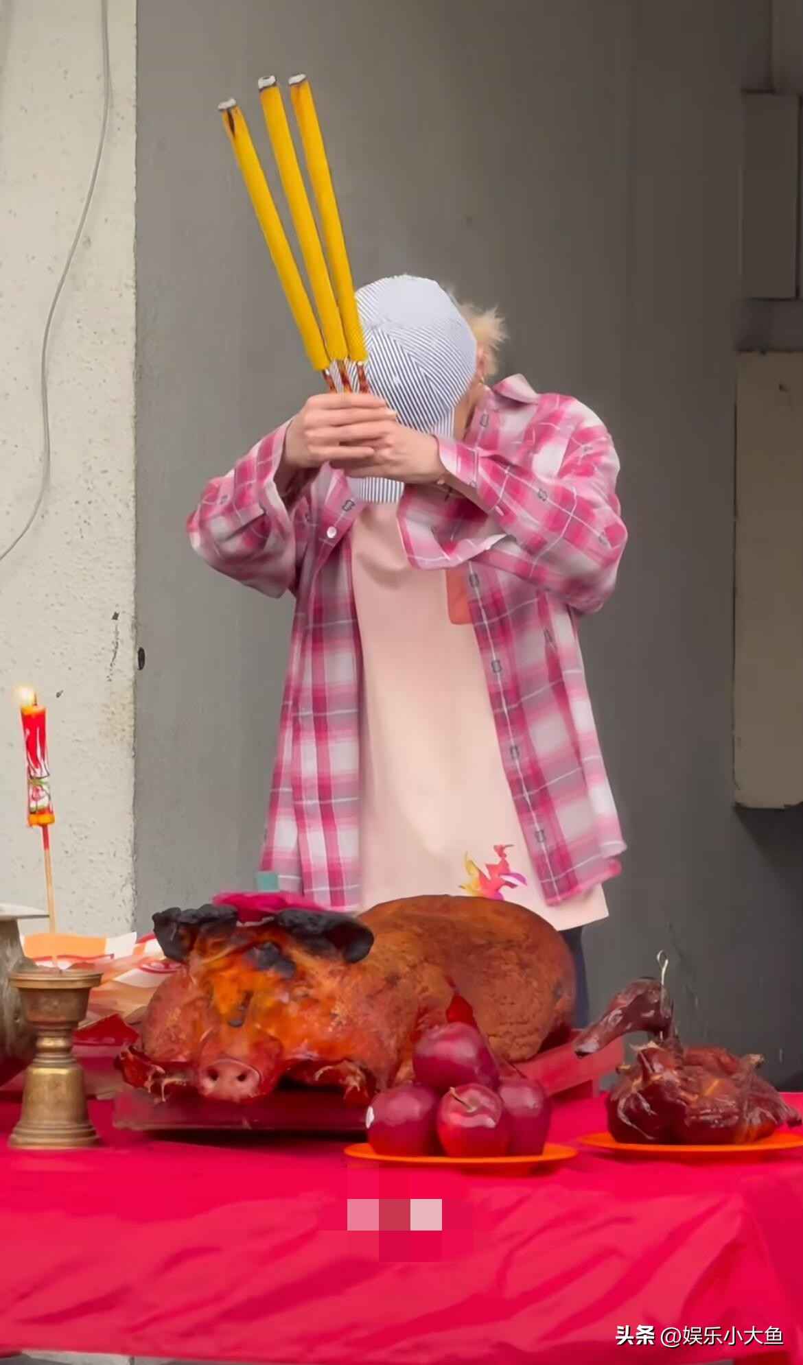 鹿晗日常穿衣搭配解析:香港红馆拜神仪式粉色造型引领潮流