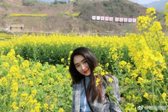 她平时超爱旅行,经常在美景里练瑜伽。你看这张照片,她穿着格子西装站在油菜花田里,多迷人啊,头发顺滑,气质优雅得没话说。
